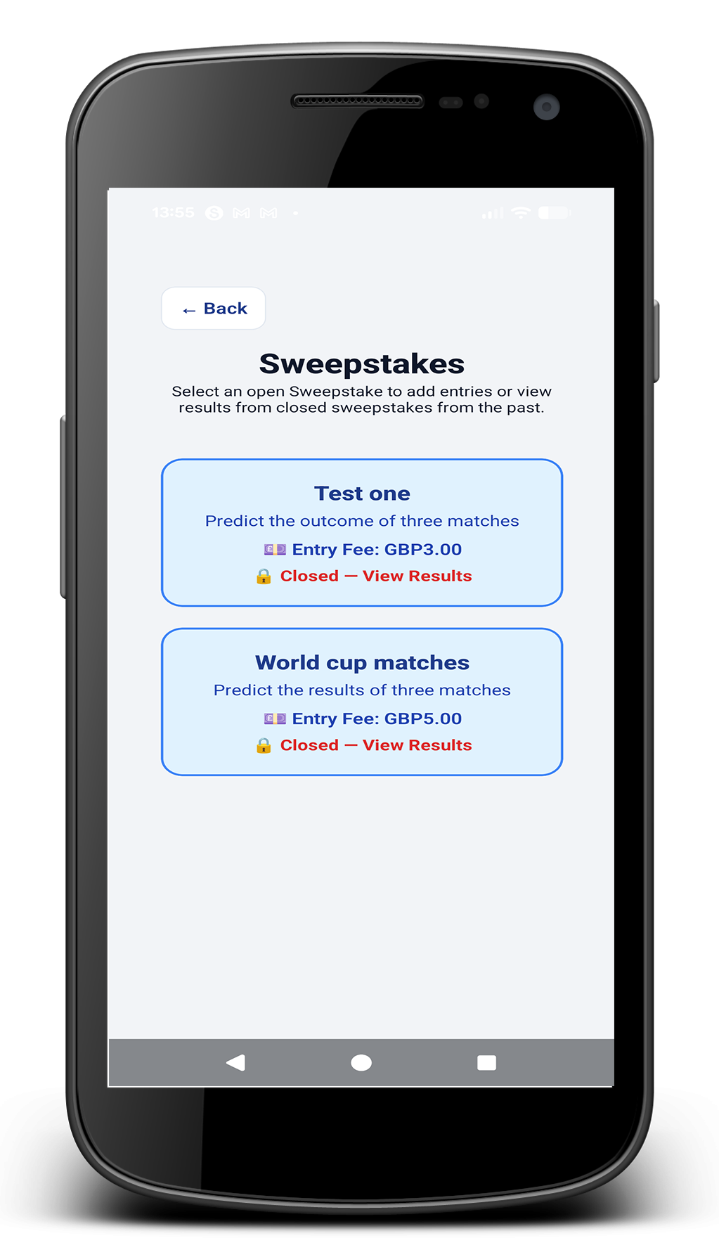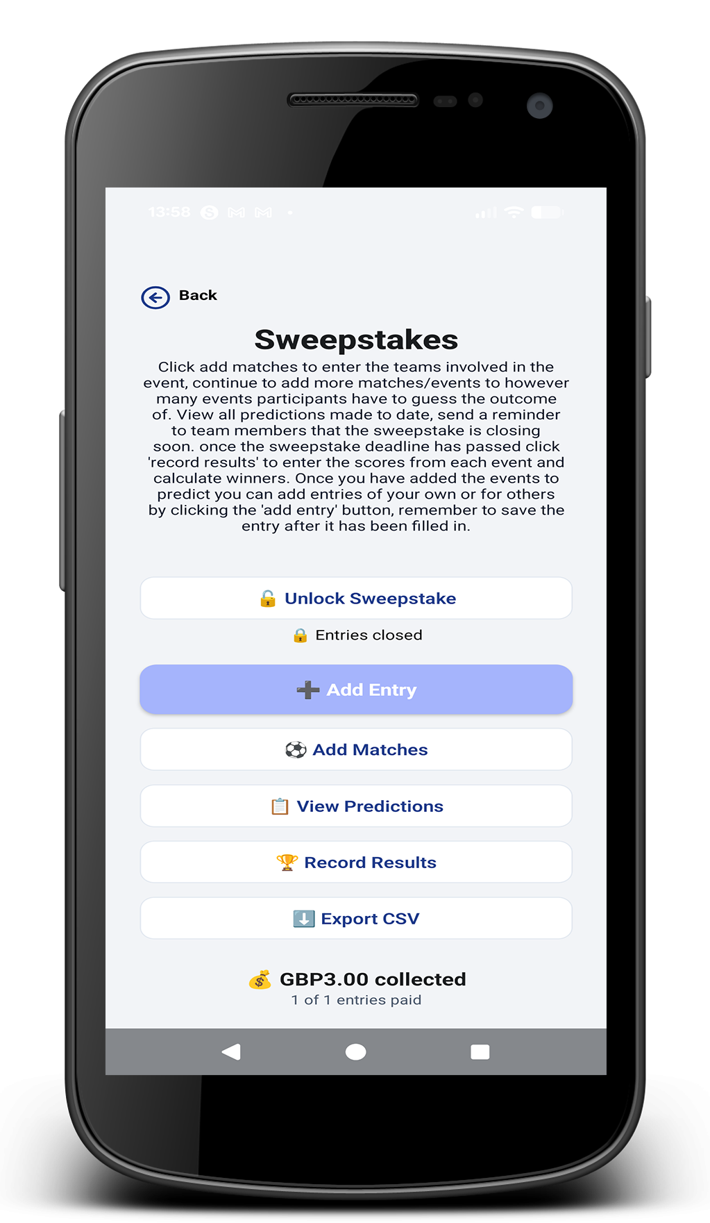 Parents submit sweepstake predictions in seconds. Totals, entries and winners are calculated automatically.